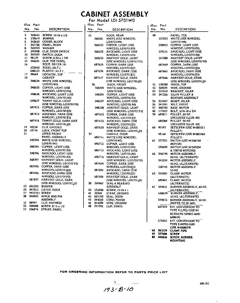 Parts for Whirlpool LDI5701W0: 05 - Section Parts