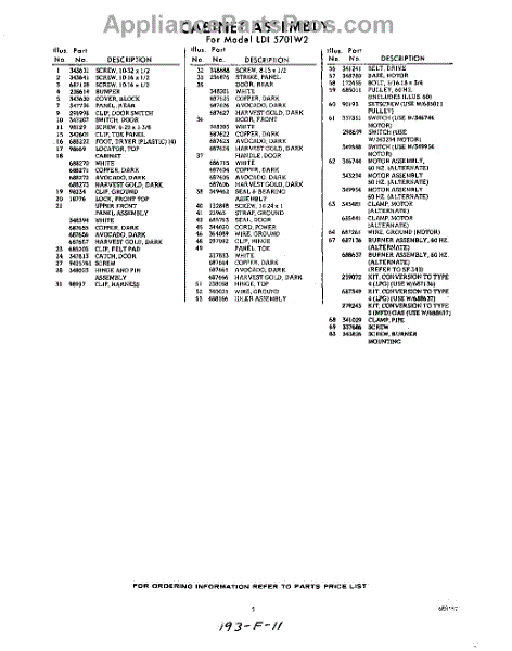 Parts for Whirlpool LDI5701W2: 05 - Section Parts