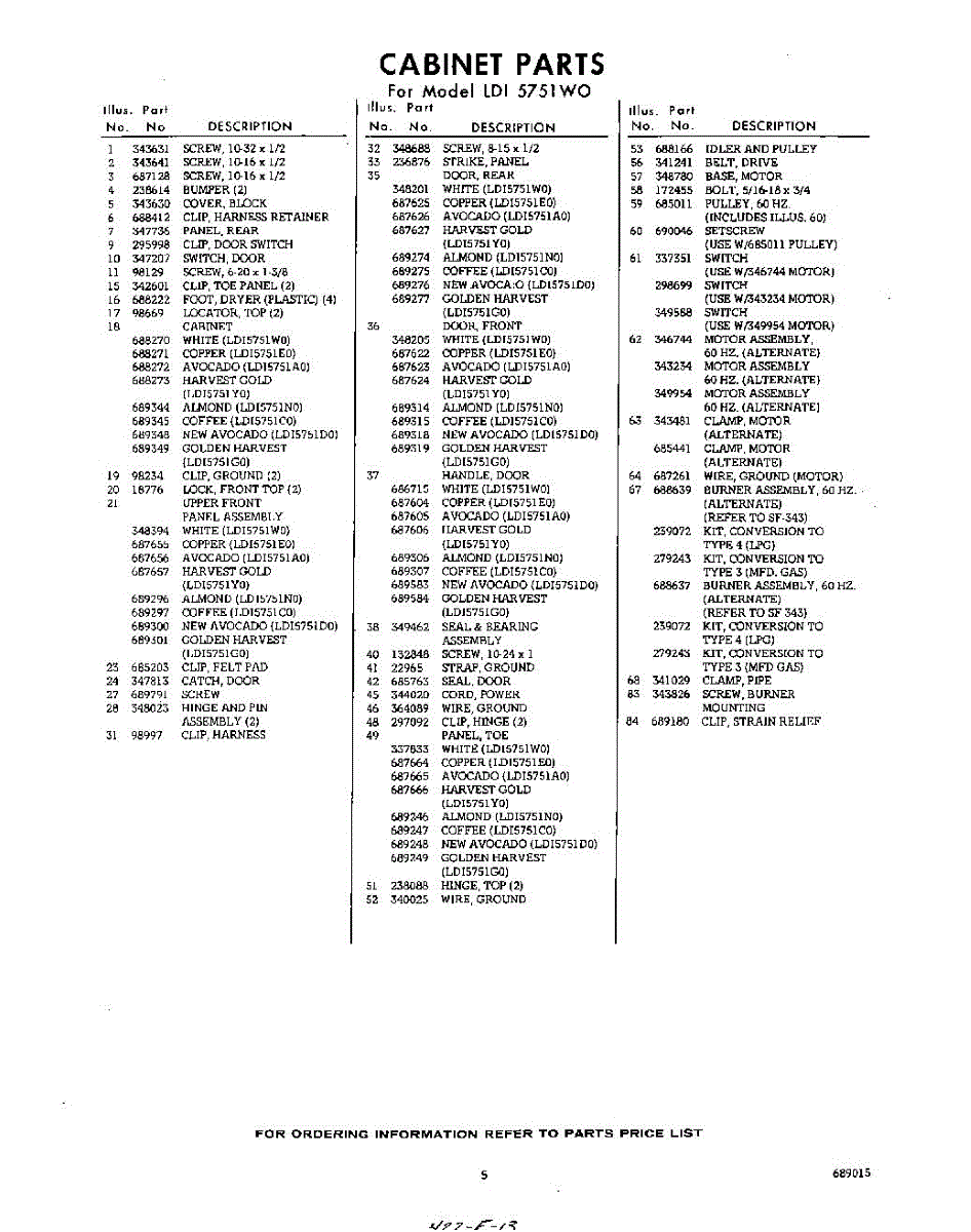 Parts for Whirlpool LDI5751W0: 05 - Section Parts