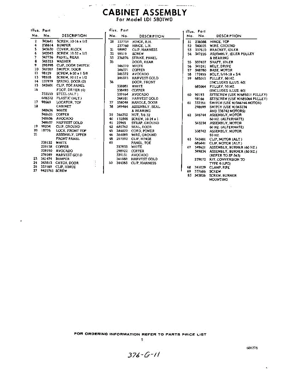 Parts for Whirlpool LDI5801W0: 05 - Section Parts
