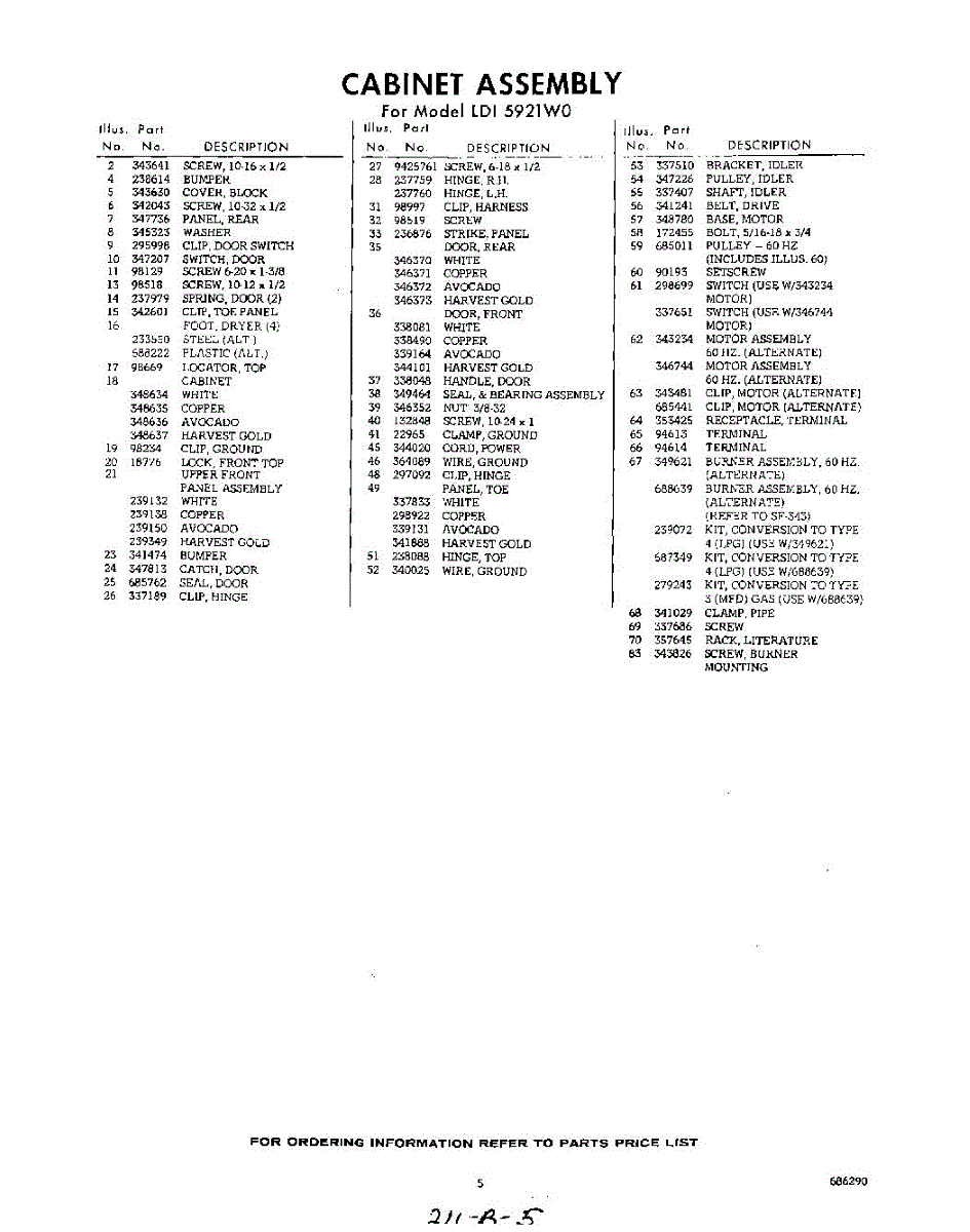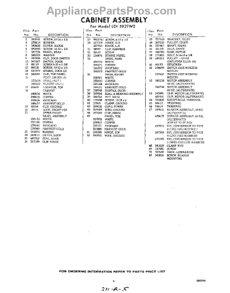 Parts for Whirlpool LDI5921W0: 05 - Section Parts