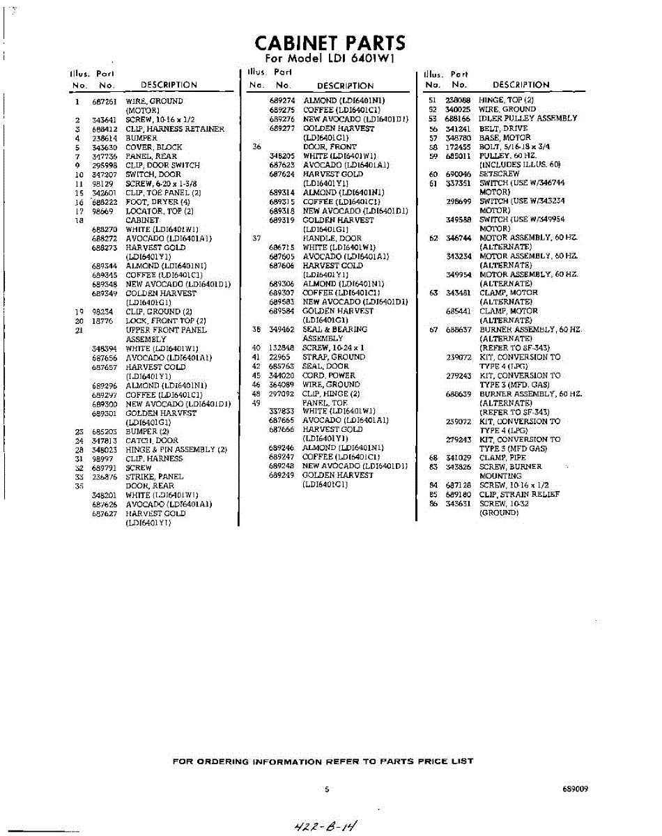 Parts for Whirlpool LDI6401W1: 05 - Section Parts