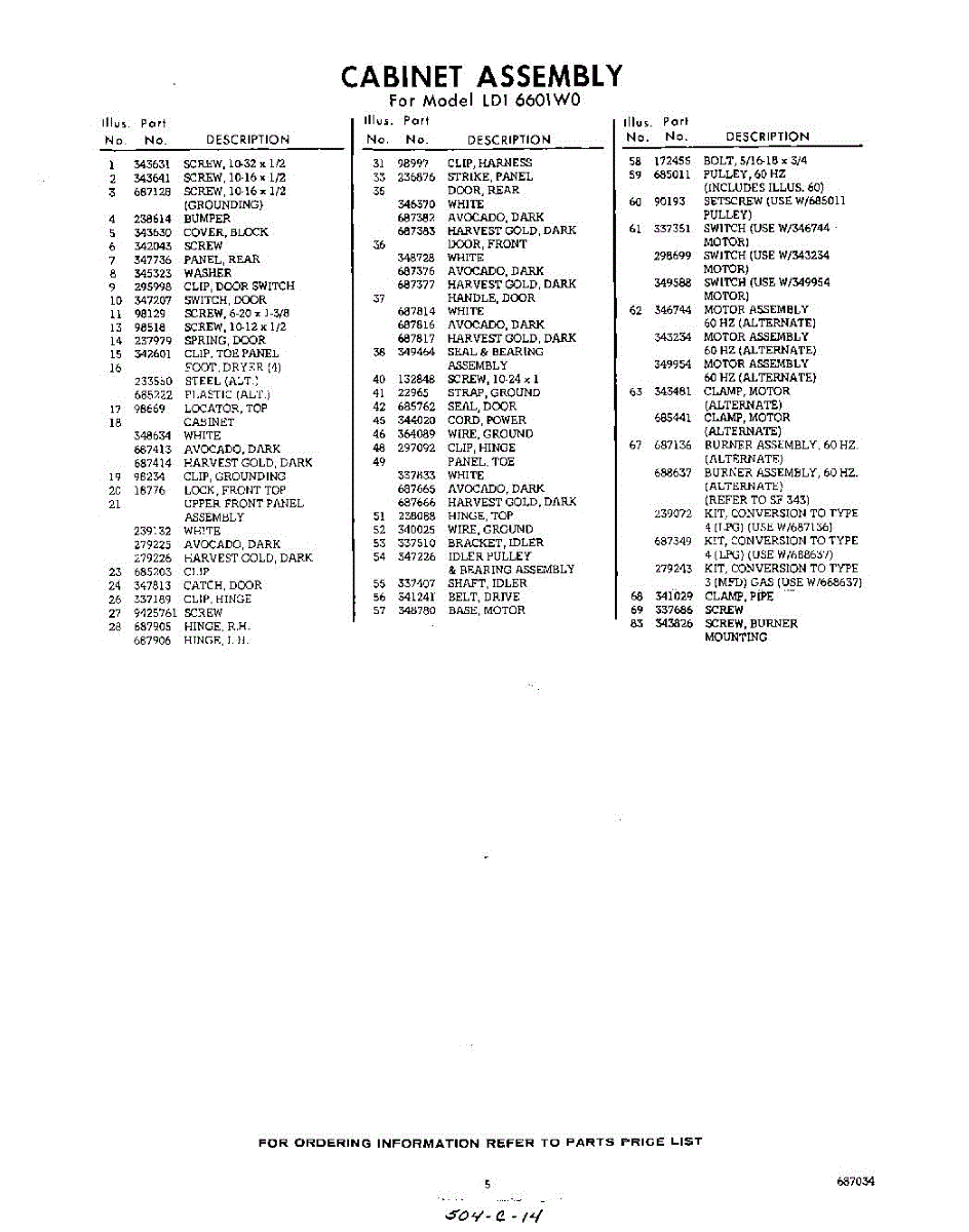 Parts for Whirlpool LDI6601W0: 05 - Section Parts