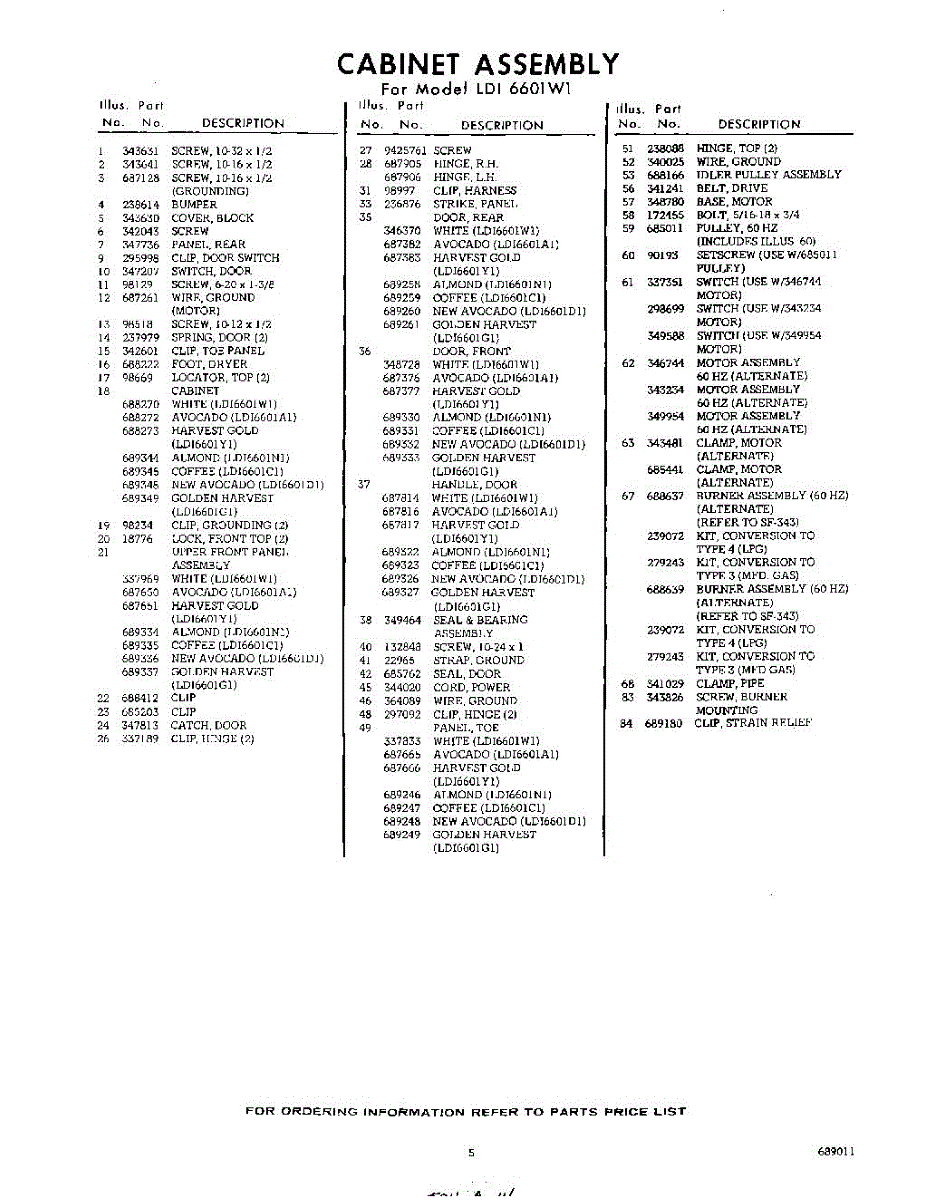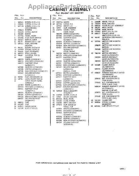 Parts for Whirlpool LDI6601W1: 05 - Section Parts