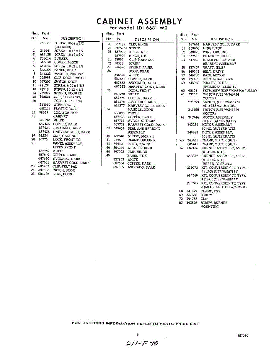 Parts for Whirlpool LDI6681W0: 05 - Section Parts