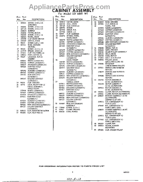 Parts for Whirlpool LDI6681W1: 05 - Section Parts