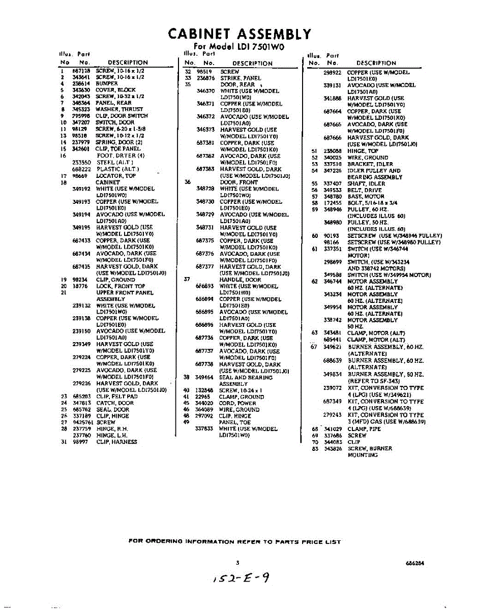 Parts for Whirlpool LDI7501W0: 03 - Section Parts