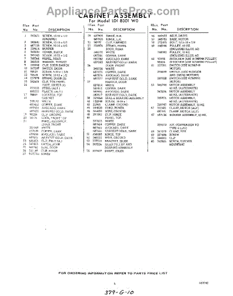 Parts for Whirlpool LDI8001W0: 05 - Section Parts