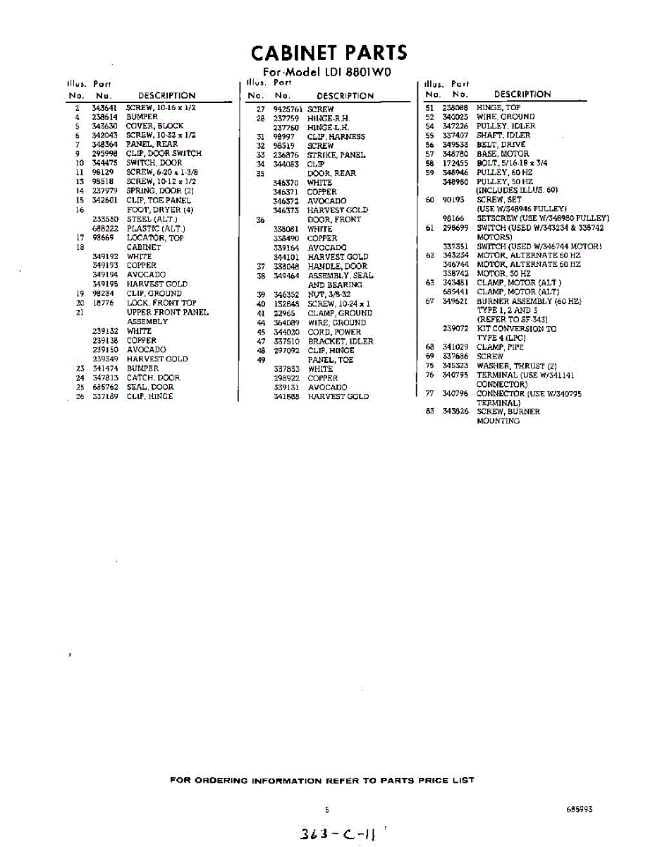 Parts for Whirlpool LDI8801W0: 05 - Section Parts