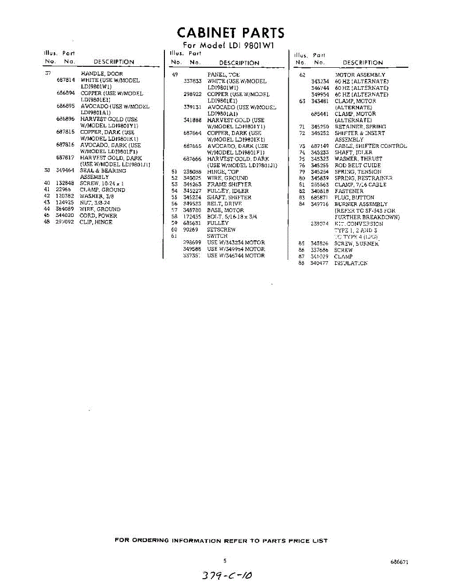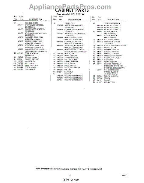 Parts for Whirlpool LDI9801W1: 05 - Section Parts
