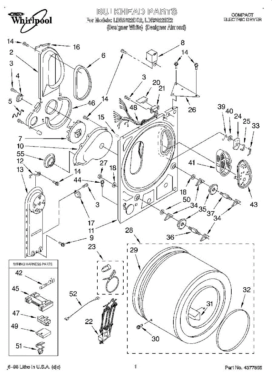 Seals the gap between drum and bulkhead to maintain airflow and quiet operation. Replace when worn to eliminate squealing, reduce lint buildup, and prevent fabric snags. Confirm fit by model number.