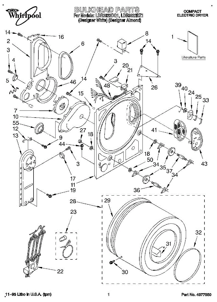 Seals the gap between drum and bulkhead to maintain airflow and quiet operation. Replace when worn to eliminate squealing, reduce lint buildup, and prevent fabric snags. Confirm fit by model number.
