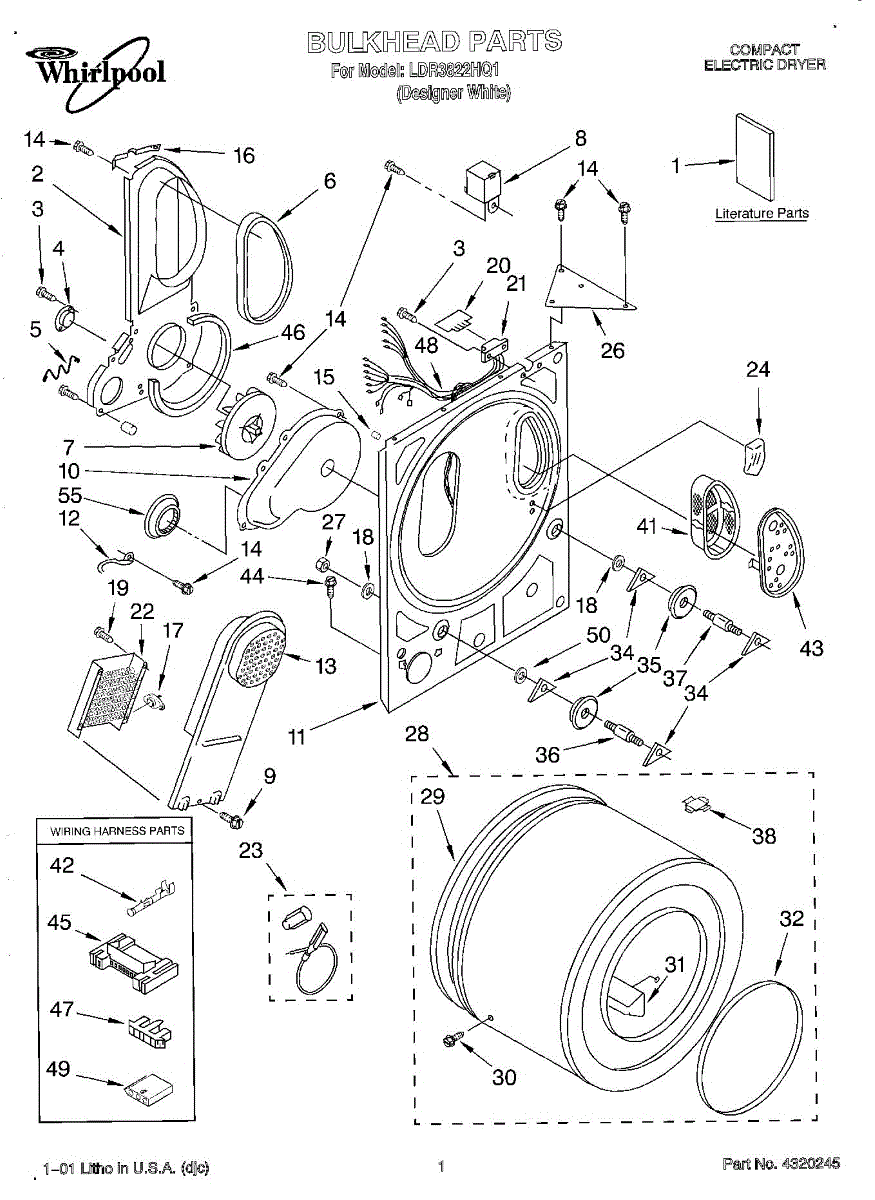 Seals the gap between drum and bulkhead to maintain airflow and quiet operation. Replace when worn to eliminate squealing, reduce lint buildup, and prevent fabric snags. Confirm fit by model number.