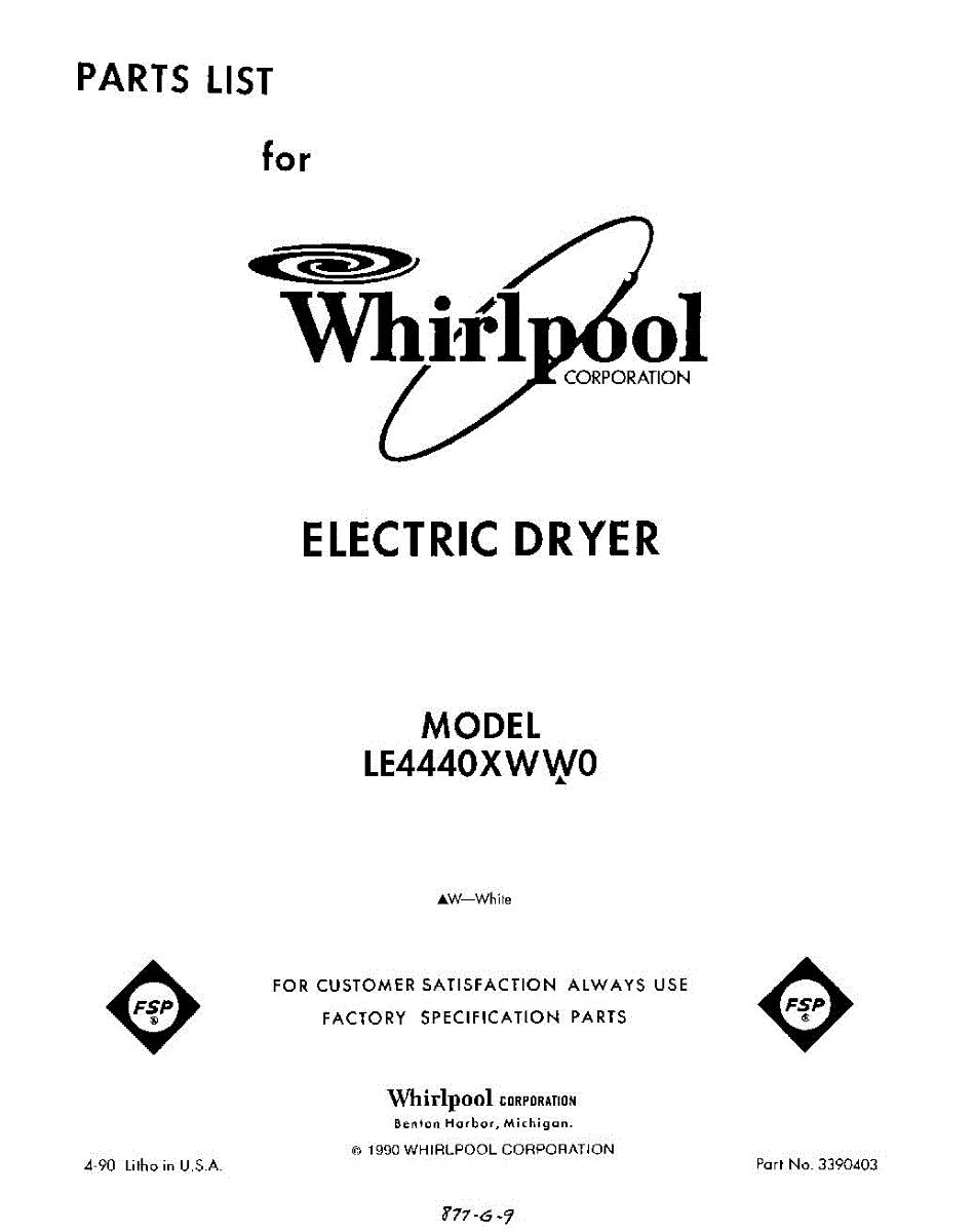 Parts for Whirlpool LE4440XWW0: 01 - Section Parts