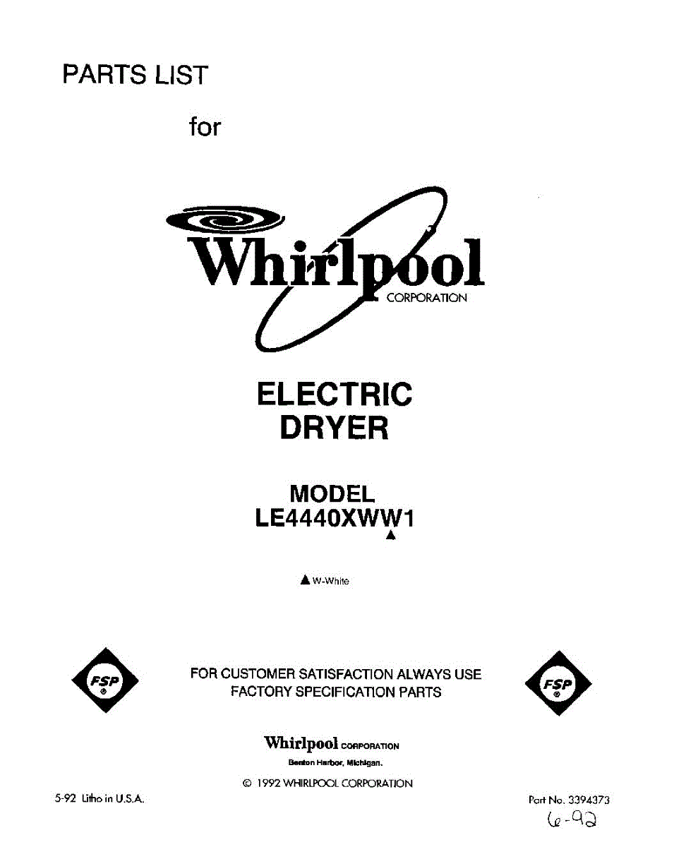 Parts for Whirlpool LE4440XWW1: 01 - Section Parts