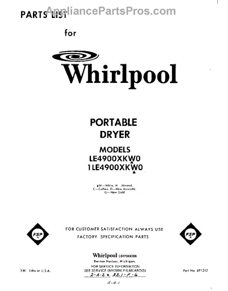 Parts for Whirlpool LE4900XKW0: 01 - Section Parts