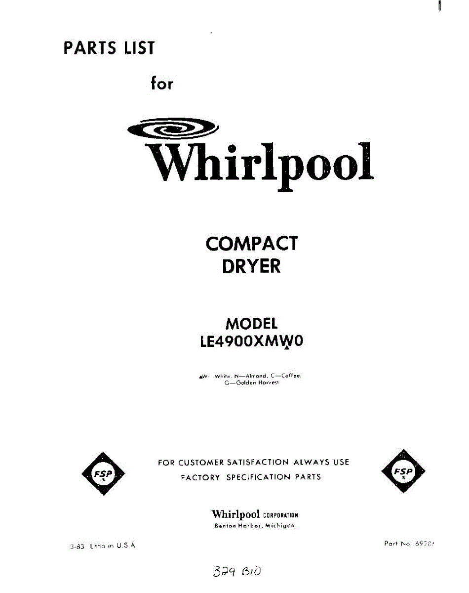 Parts for Whirlpool LE4900XMW0: 01 - Section Parts