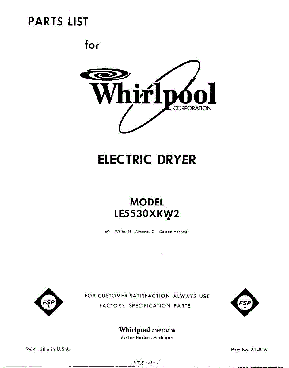 Parts for Whirlpool LE5530XKW2: 01 - Section Parts