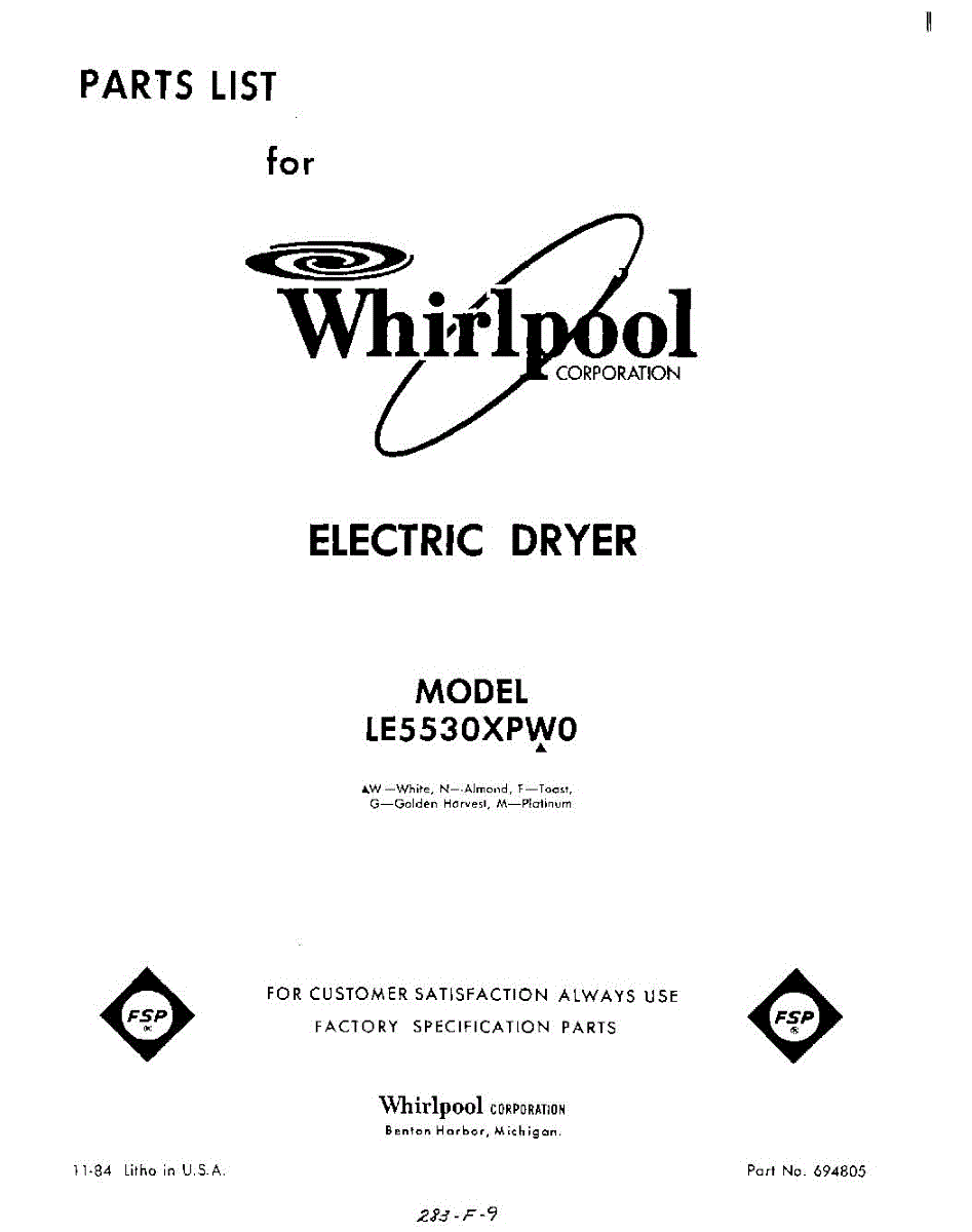 Parts for Whirlpool LE5530XPW0: 01 - Section Parts