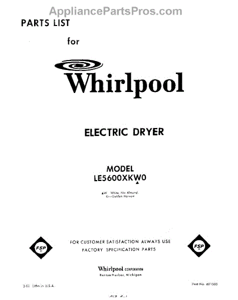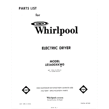 Parts for Whirlpool LE5600XKW0: 01 - Section Parts
