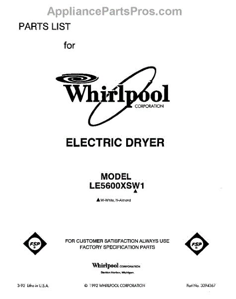 Parts for Whirlpool LE5600XSW1: 01 - Section Parts