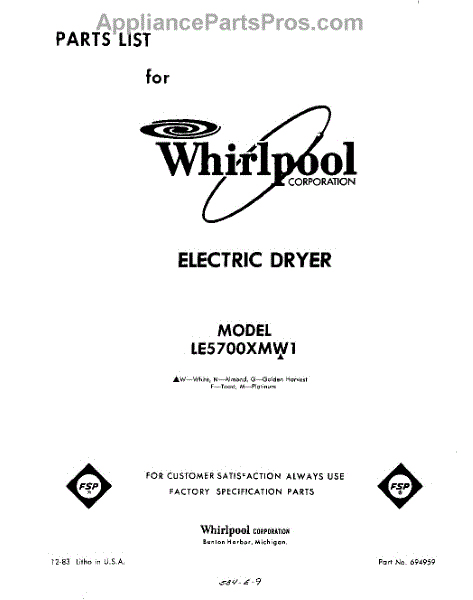 Parts for Whirlpool LE5700XMW1: 01 - Section Parts