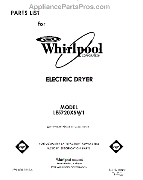 Parts for Whirlpool LE5720XSG1: 01 - Section Parts