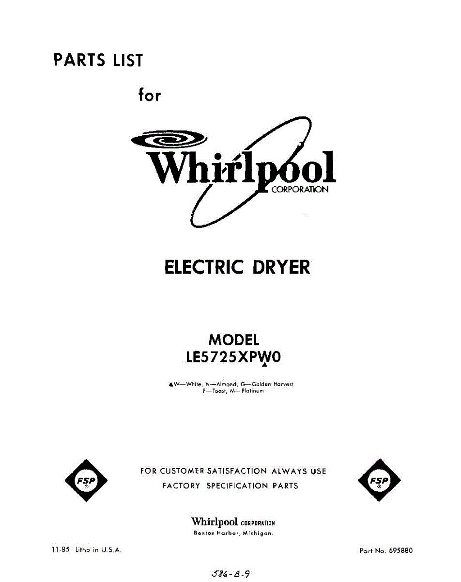 Parts for Whirlpool LE5725XPW0: 01 - Section Parts
