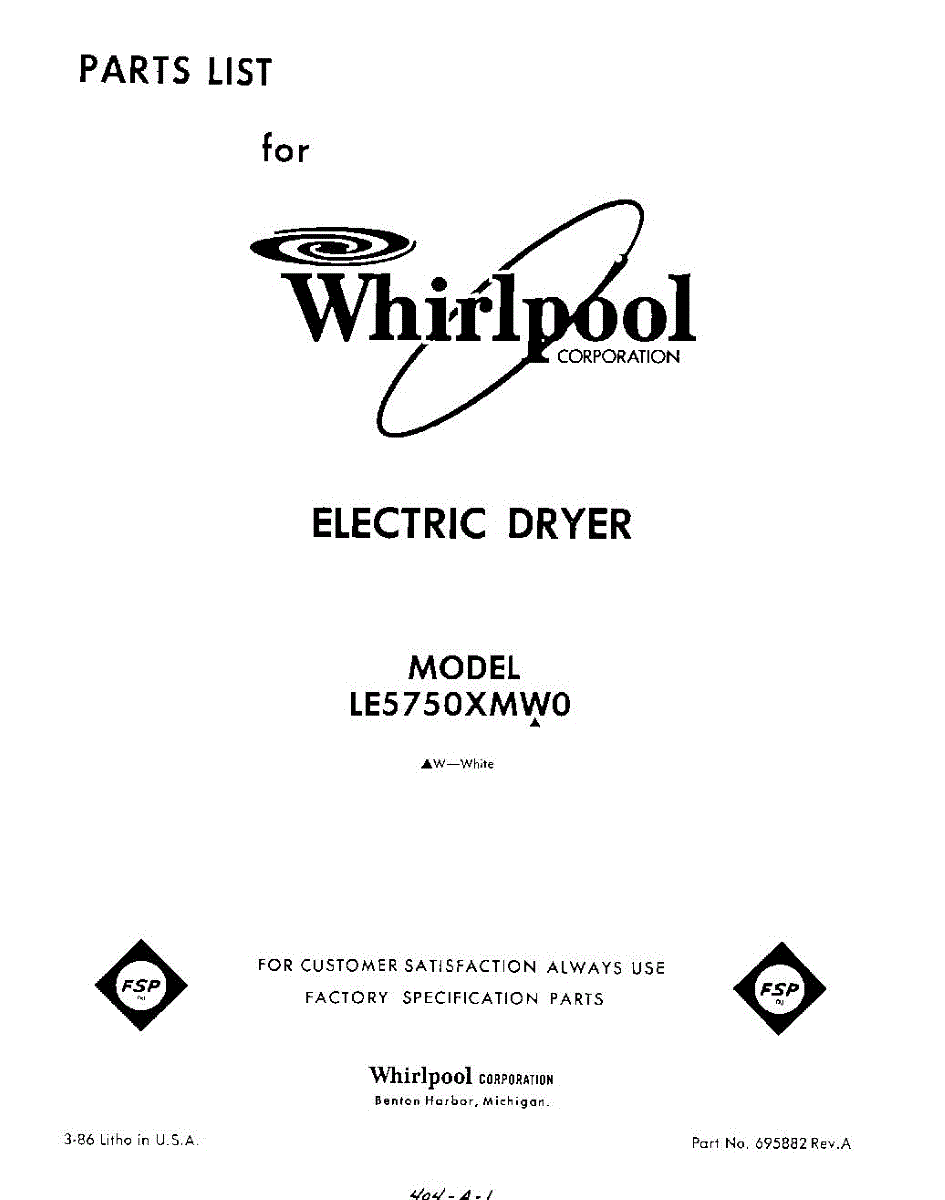 Parts for Whirlpool LE5750XMW0: 01 - Section Parts