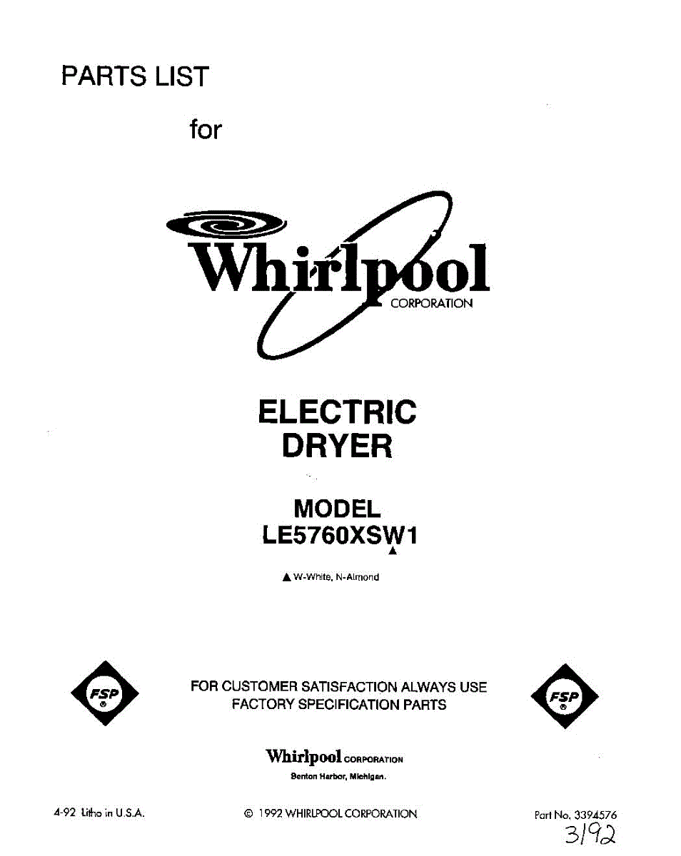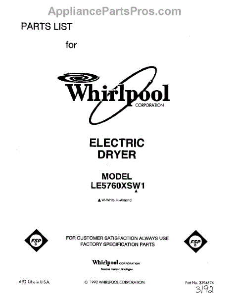 Parts for Whirlpool LE5760XSN1: 01 - Section Parts