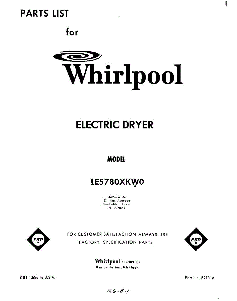 Parts for Whirlpool LE5780XKW0: 01 - Section Parts