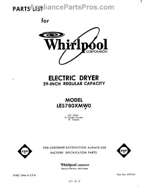 Parts for Whirlpool LE5780XMW0: 01 - Section Parts