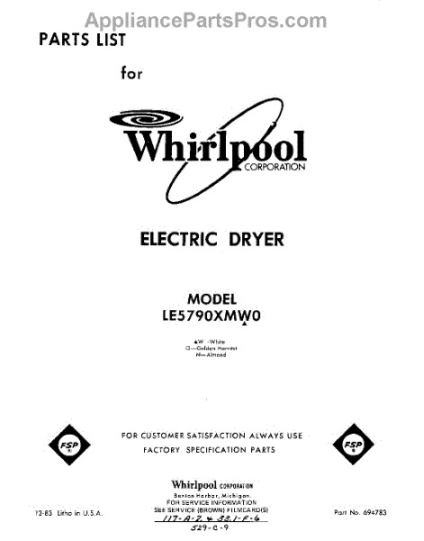 Parts for Whirlpool LE5790XMW0: 01 - Section Parts