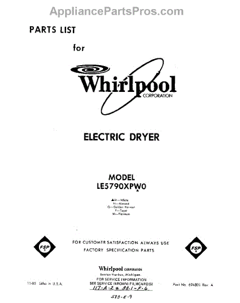 Parts for Whirlpool LE5790XPW0: 01 - Section Parts
