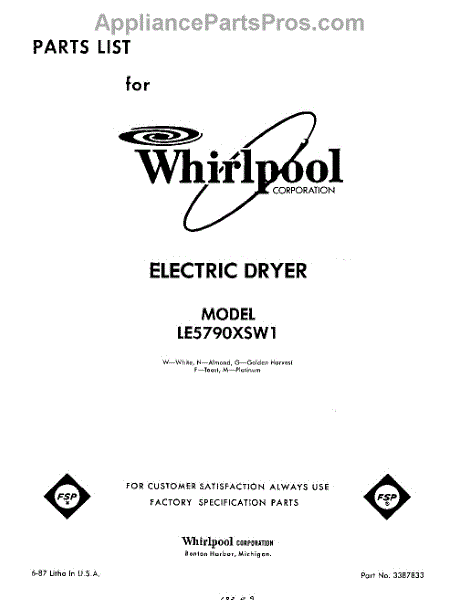 Parts for Whirlpool LE5790XSW1: 01 - Section Parts