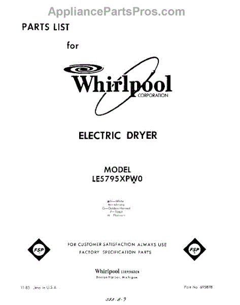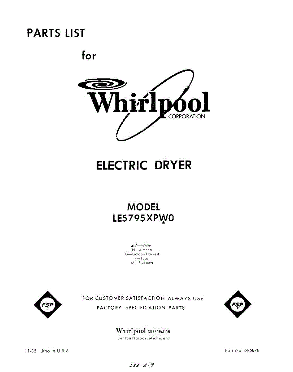 Parts for Whirlpool LE5795XPW0: 01 - Section Parts