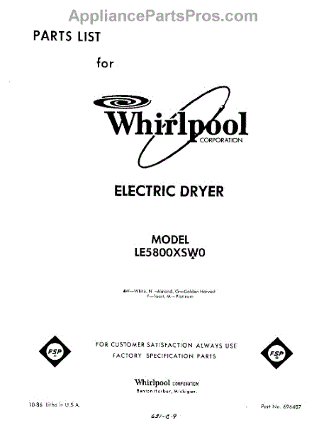 Parts for Whirlpool LE5800XSW0: 01 - Section Parts