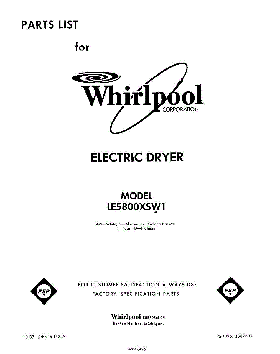 Parts for Whirlpool LE5800XSW1: 01 - Section Parts