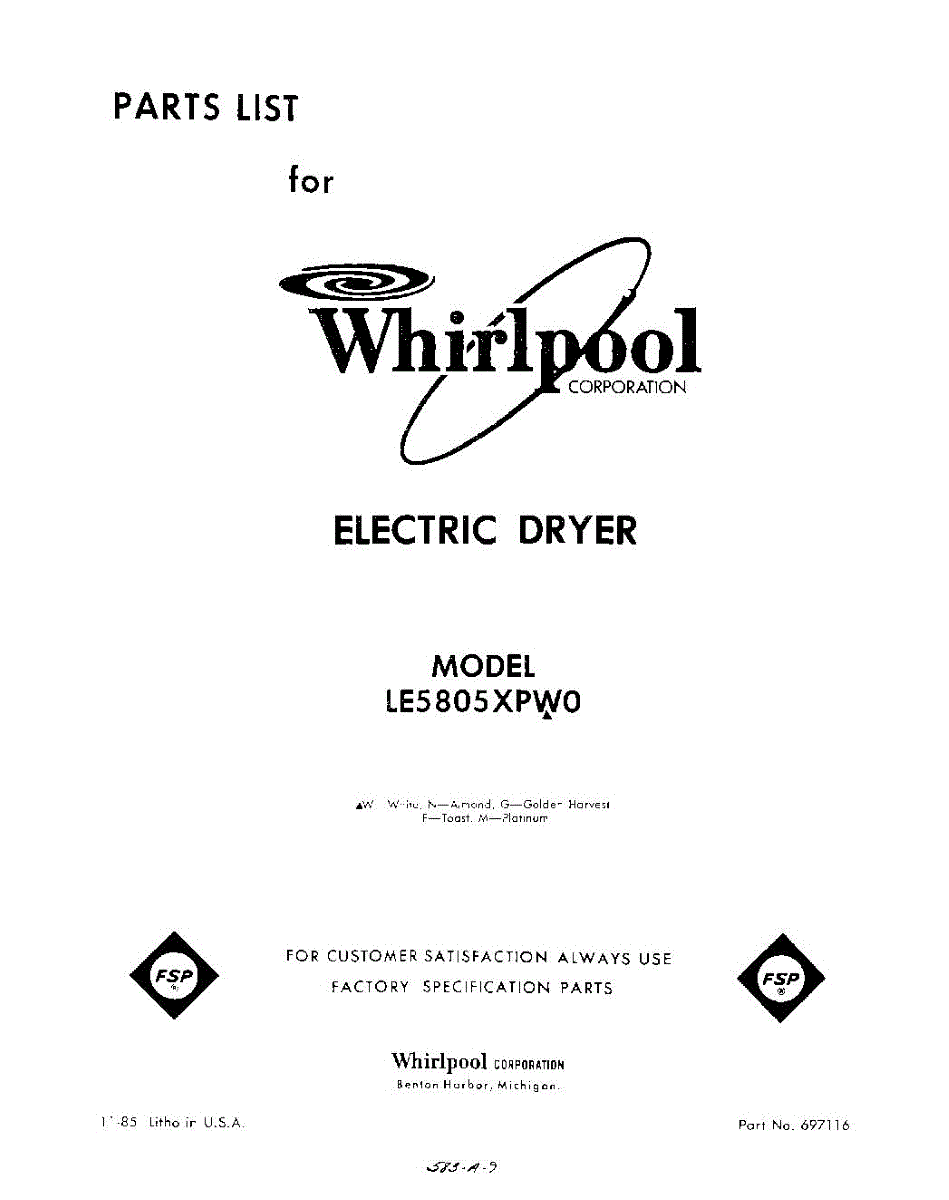 Parts for Whirlpool LE5805XPW0: 01 - Section Parts