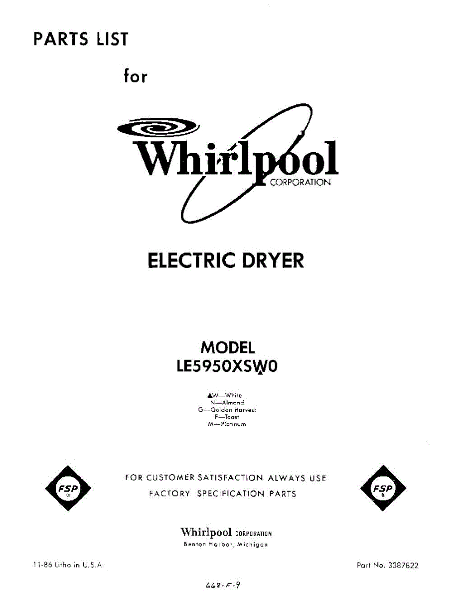 Parts for LE5950XSW0