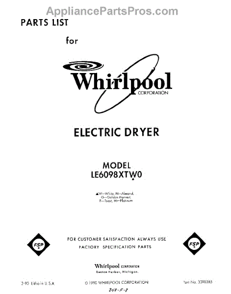 Parts for Whirlpool LE6098XTG0: 01 - Section Parts