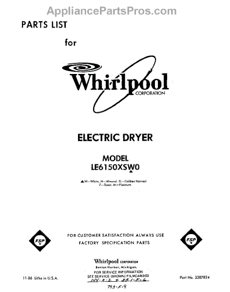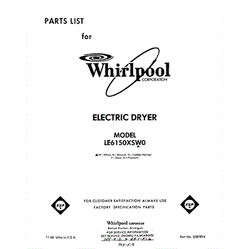 Parts for Whirlpool LE6150XSW0: 01 - Section Parts