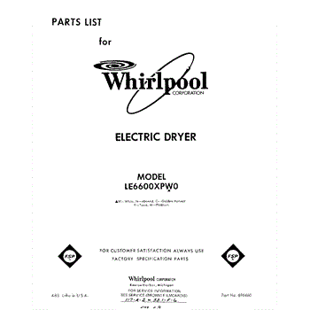 Parts for Whirlpool LE6600XPW0: 01 - Section Parts
