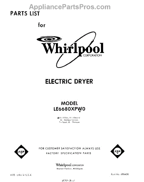 Parts for Whirlpool LE6680XPW0: 01 - Section Parts