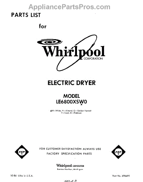 Parts for Whirlpool LE6800XSW0: 01 - Section Parts