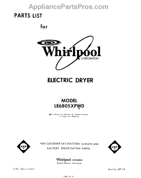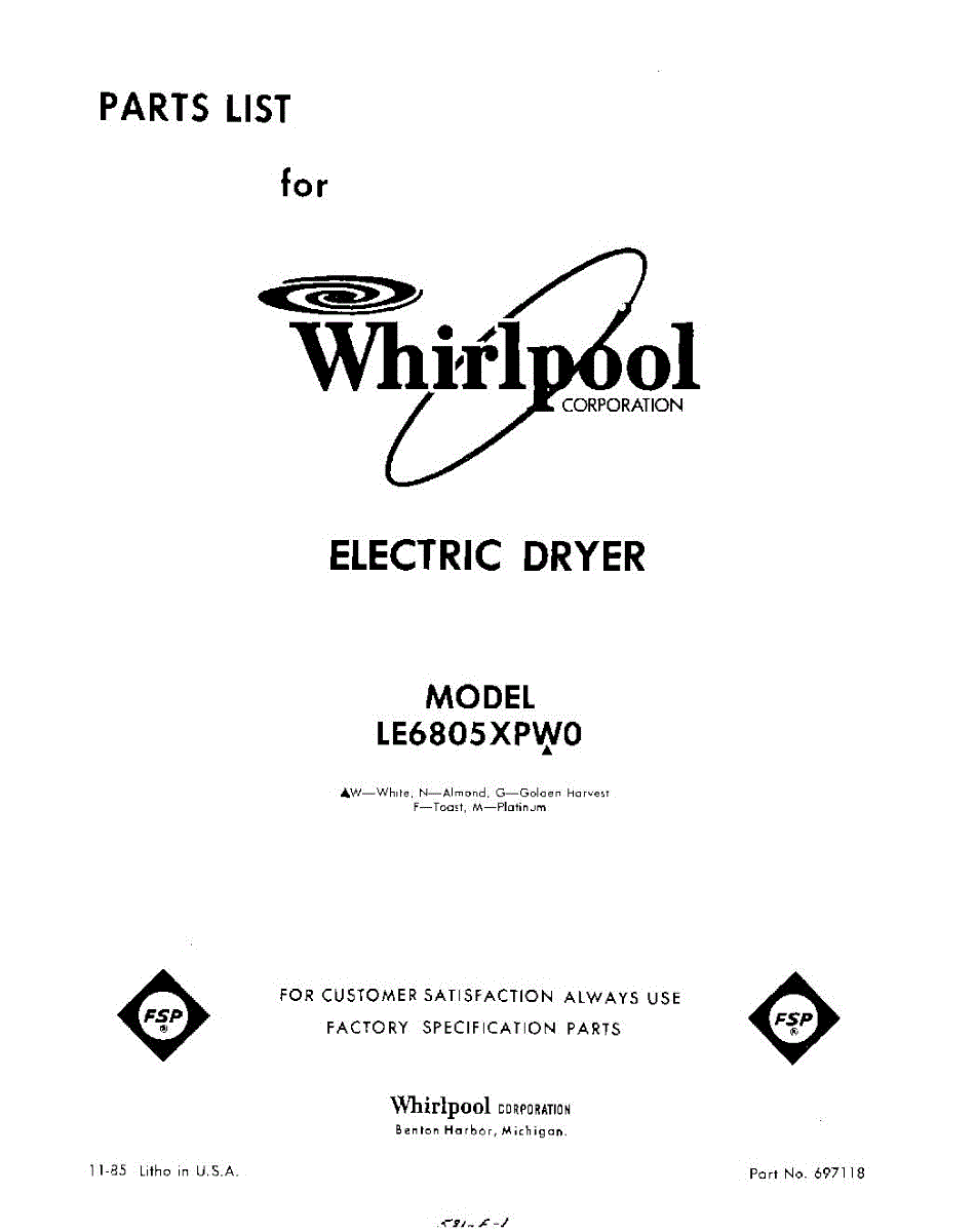 Parts for Whirlpool LE6805XPW0: 01 - Section Parts