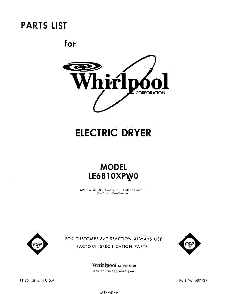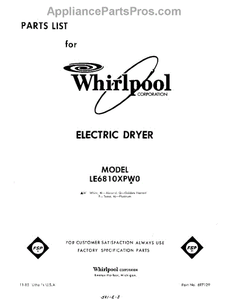 Parts for Whirlpool LE6810XPW0: 01 - Section Parts