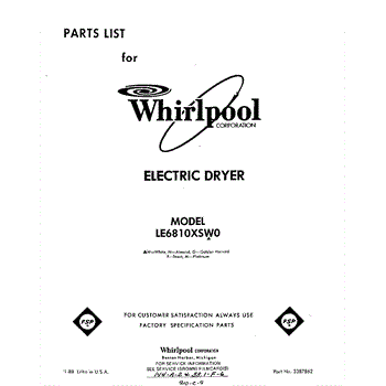Parts for Whirlpool LE6810XSW0: 01 - Section Parts