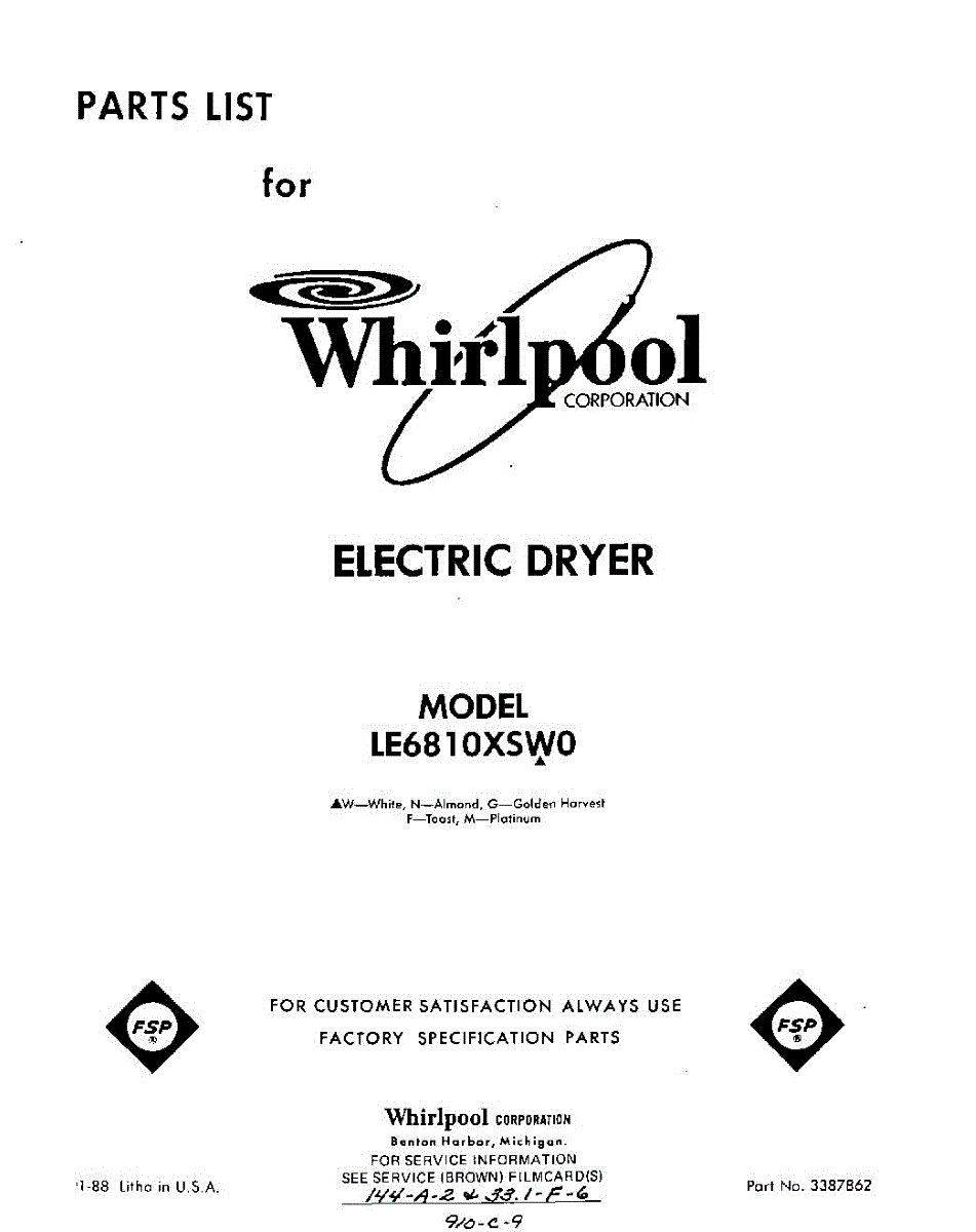 Parts for LE6810XSW0