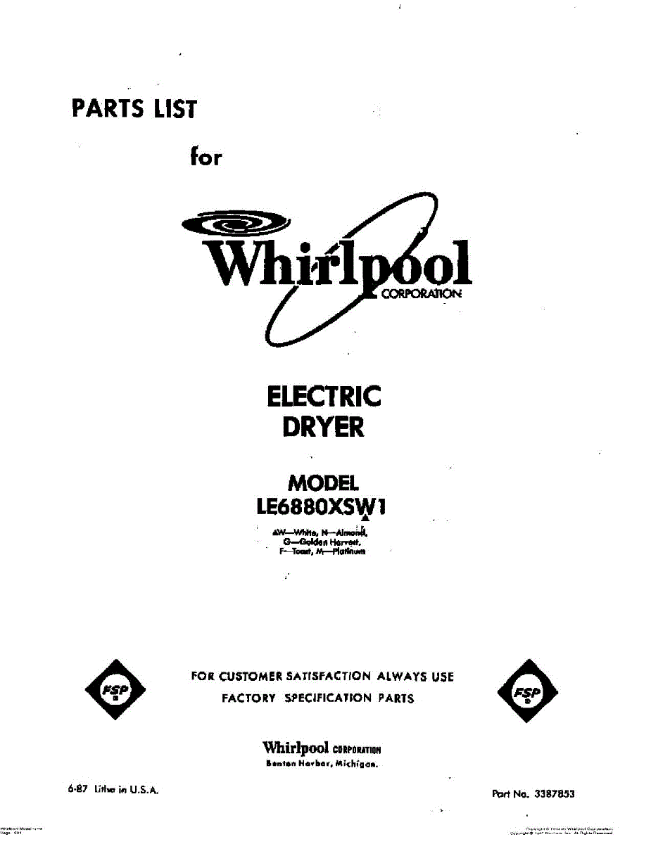 Whirlpool Parts